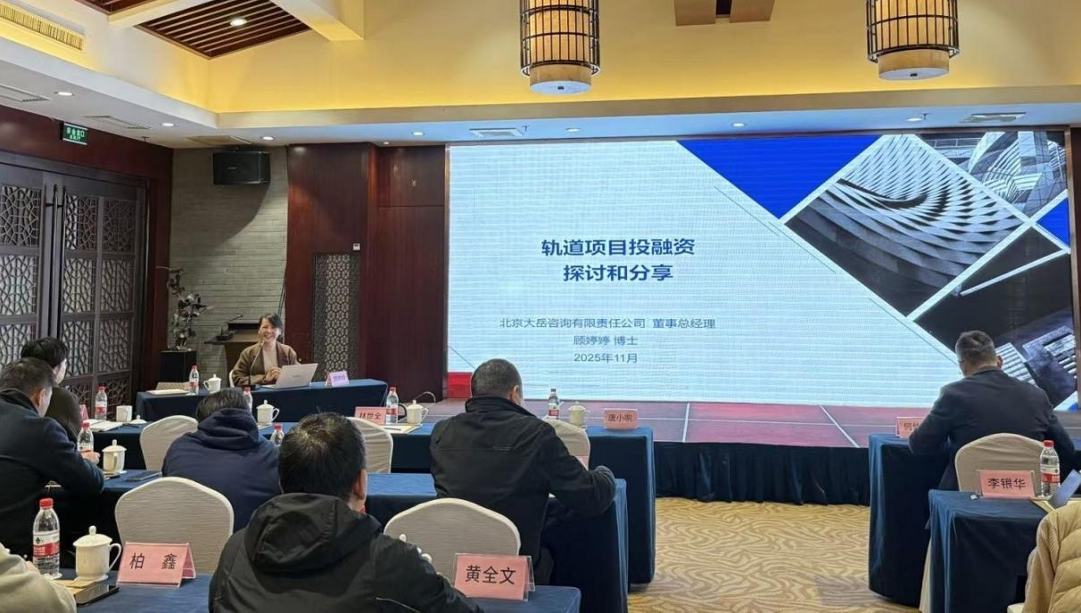為進(jìn)一步拓展視野,提高湖州市軌道交通隊(duì)伍的專(zhuān)業(yè)化水平,湖州市軌道交通建設(shè)管理服務(wù)中心于2025年11月19日至21日在長(zhǎng)興縣舉辦全市“軌道交通大講堂”培訓(xùn)班。市發(fā)展改革委、市交通運(yùn)輸局、區(qū)縣(鐵辦)等相關(guān)單位積極參與,共同推動(dòng)此次培訓(xùn)活動(dòng)的順利開(kāi)展。本次培訓(xùn)班邀請(qǐng)了大岳咨詢(xún)董事總經(jīng)理顧婷婷博士作為專(zhuān)家,于11月19日下午圍繞“軌道項(xiàng)目投融資探討和分享” 這一主題,開(kāi)展了一場(chǎng)深入且精彩的專(zhuān)題授課。